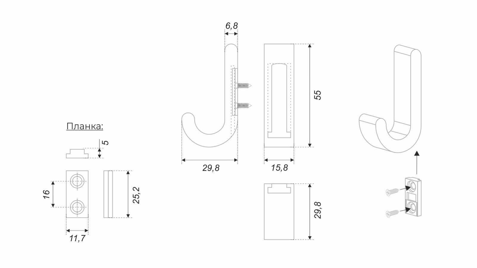 K108GR.14 Крючок-вешалка UNO, серый