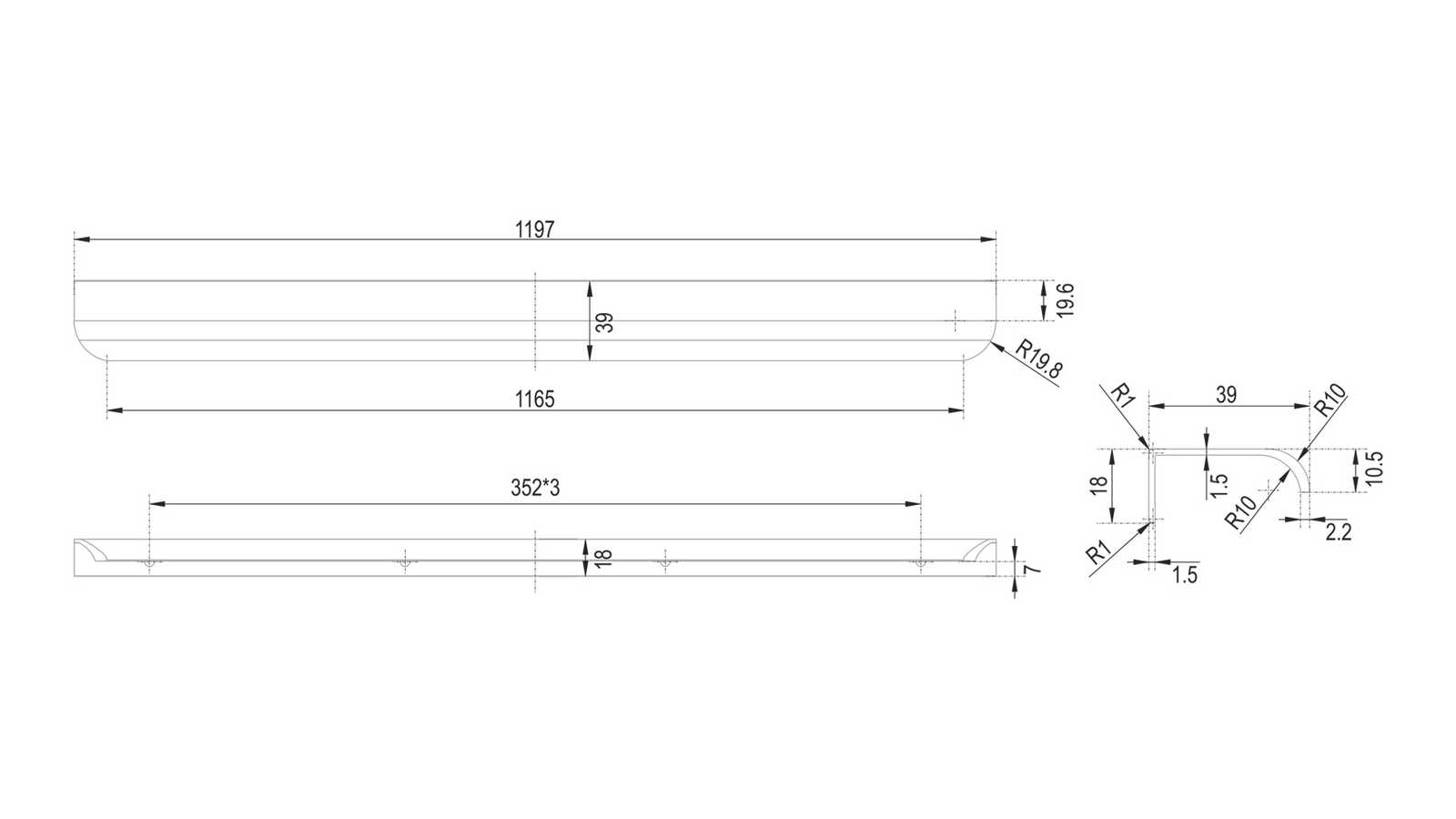 RT110GR.1/000/1200 Ручка торцевая MONTE, 1200мм, серый
