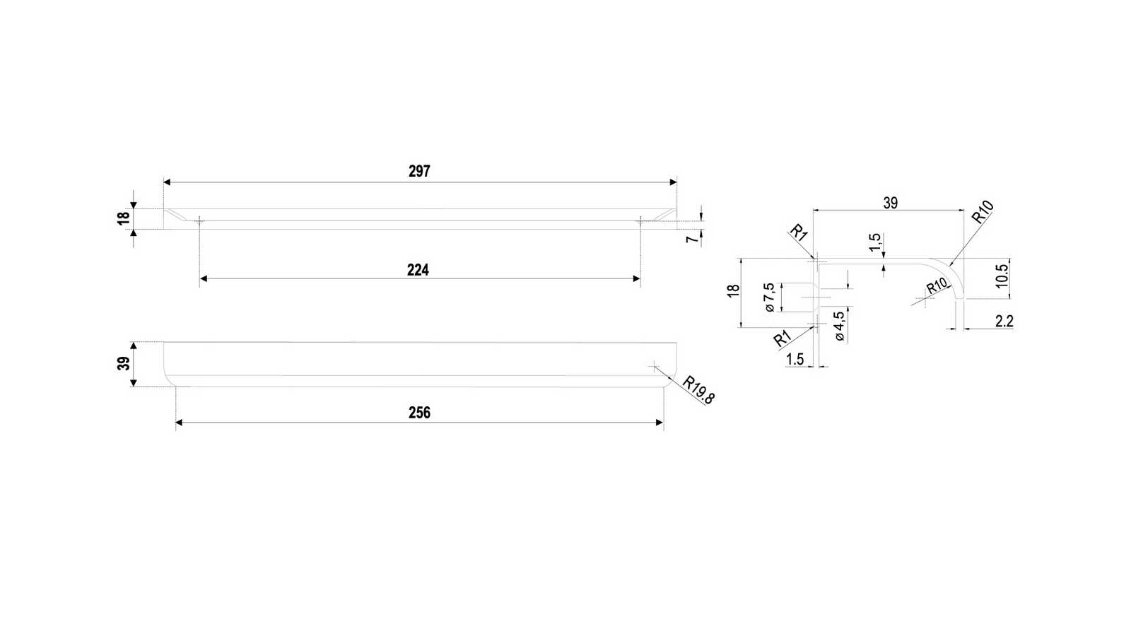 RT110GR.1/224/300 Ручка торцевая MONTE, 300мм, серый
